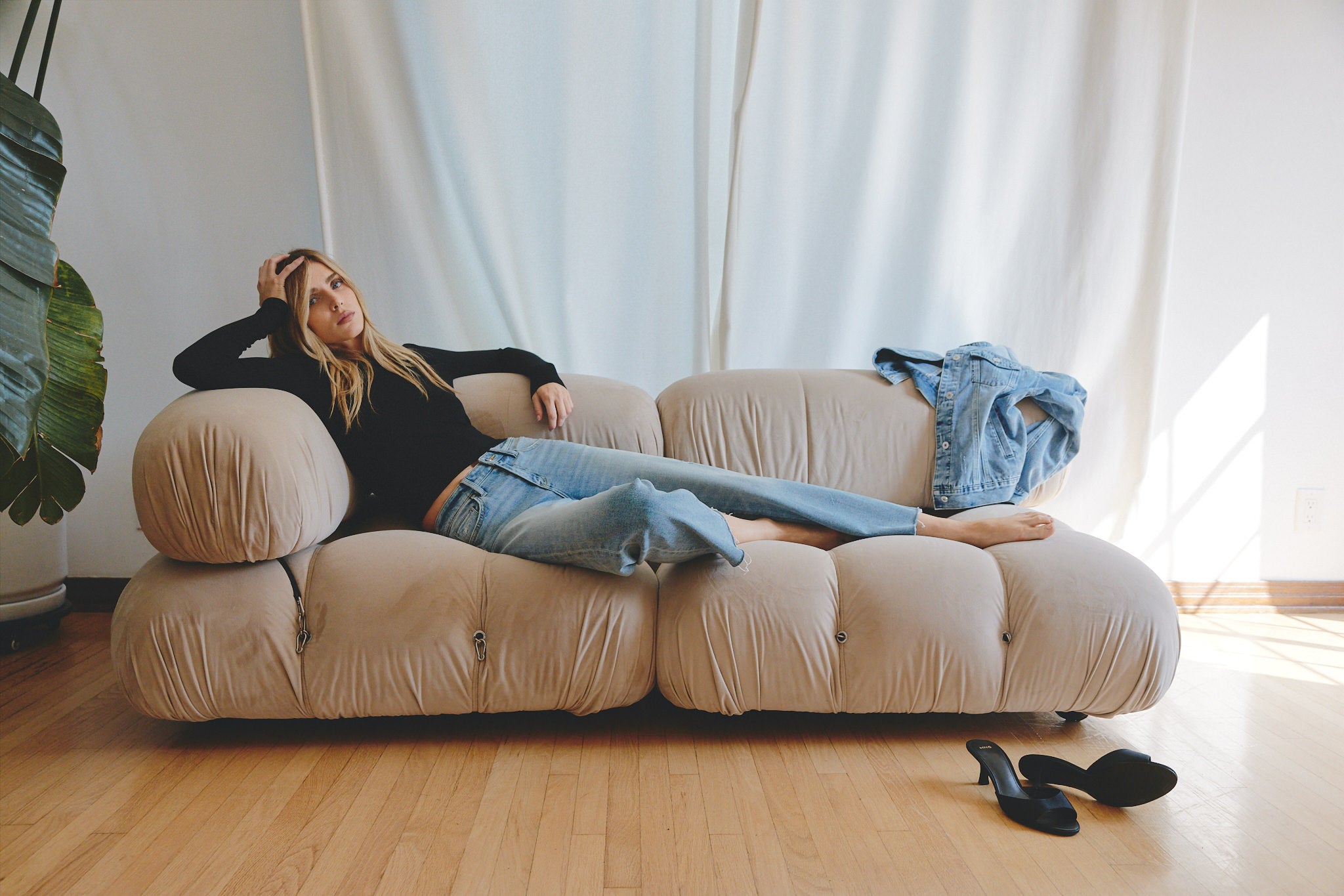 Deep Forrest - Super High Rise Elastic Band Barrel Leg Jeans